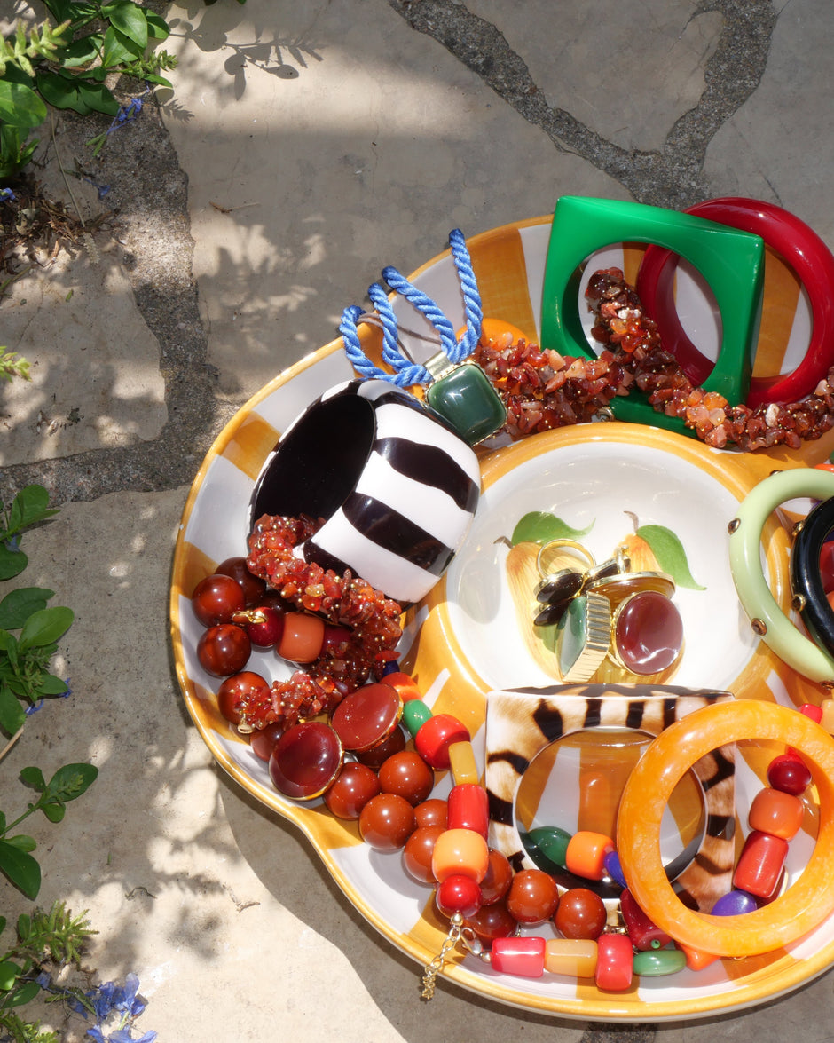 As a young jewelry brand, we are committed to making thoughtful and responsible choices wherever we can. Each piece is handcrafted in India by skilled artisans, and we aim to use as many natural materials as possible — such as brass, semi-precious stones, and ceramics. While we’re not perfect, we believe that small, conscious steps can make a meaningful difference.