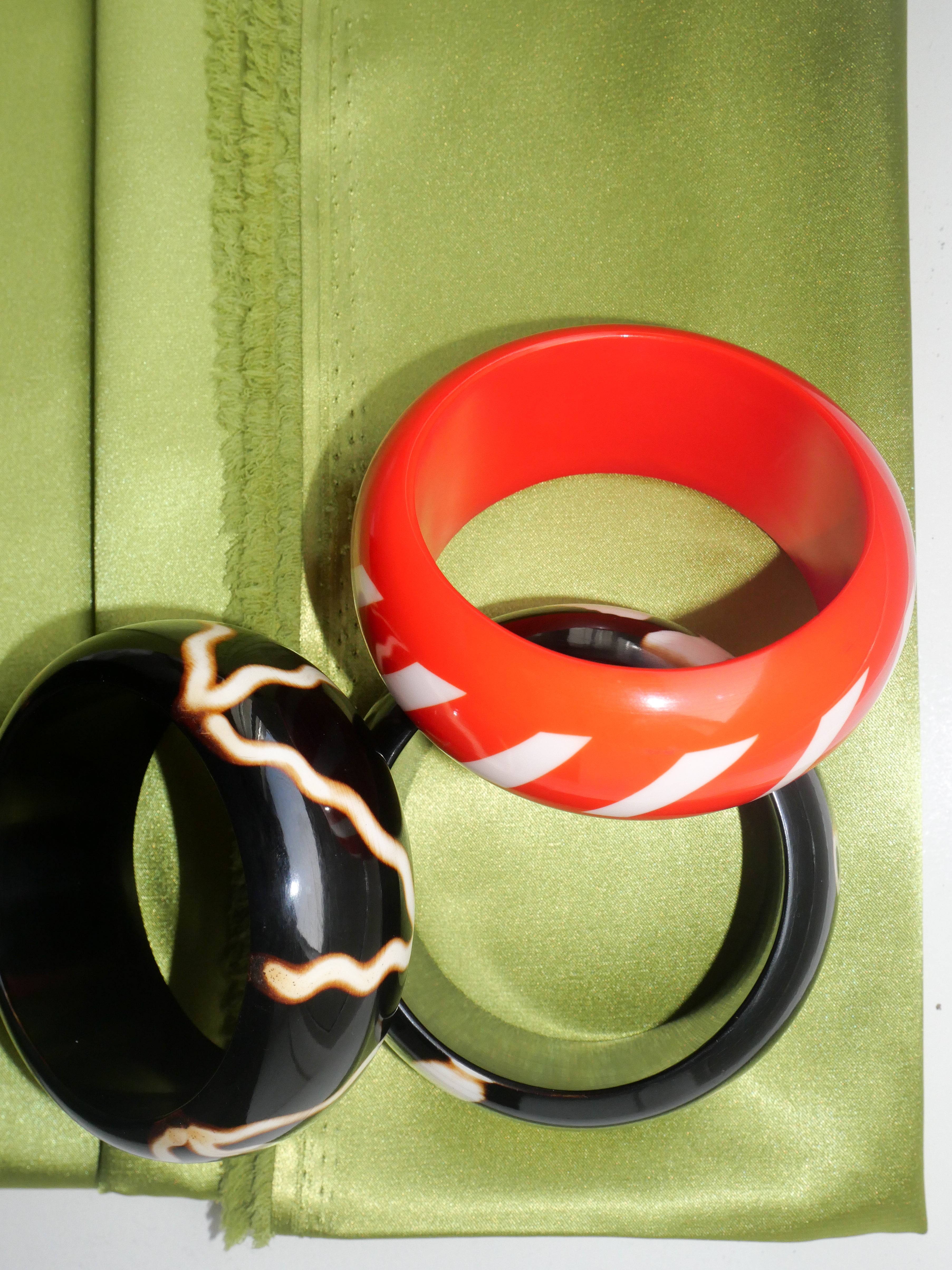 The Cycle Bangle Set celebrates contrast and connection — a pairing of the Stormy, the Coral Red Striped bangle and the Windy bangles, inspired by the shifting moods of nature.