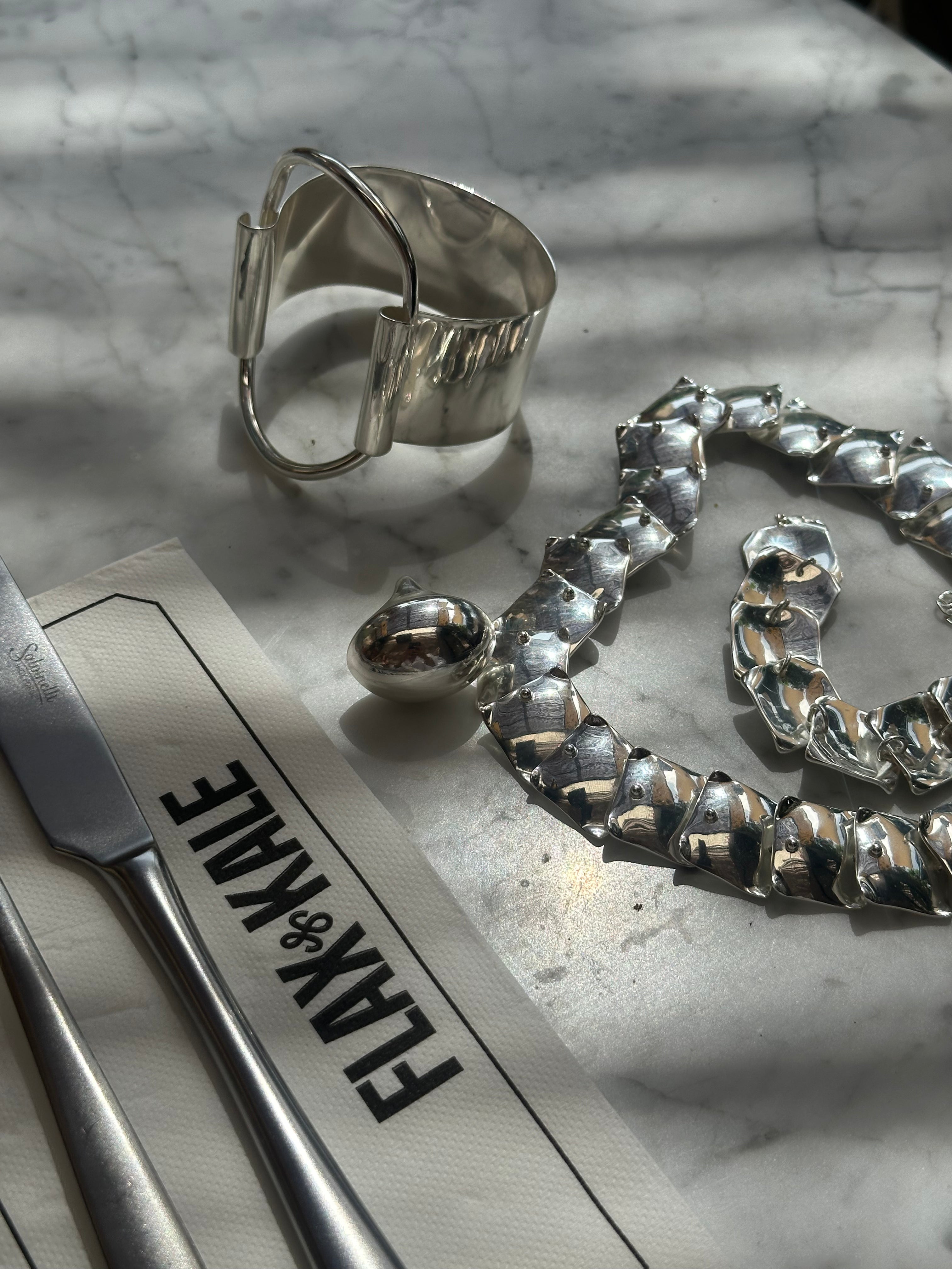 The Nova Bracelet is a striking cuff designed around movement, volume, and confidence. Its smooth, curved surface wraps the wrist in a bold yet refined silhouette, creating a powerful statement with effortless wearability.