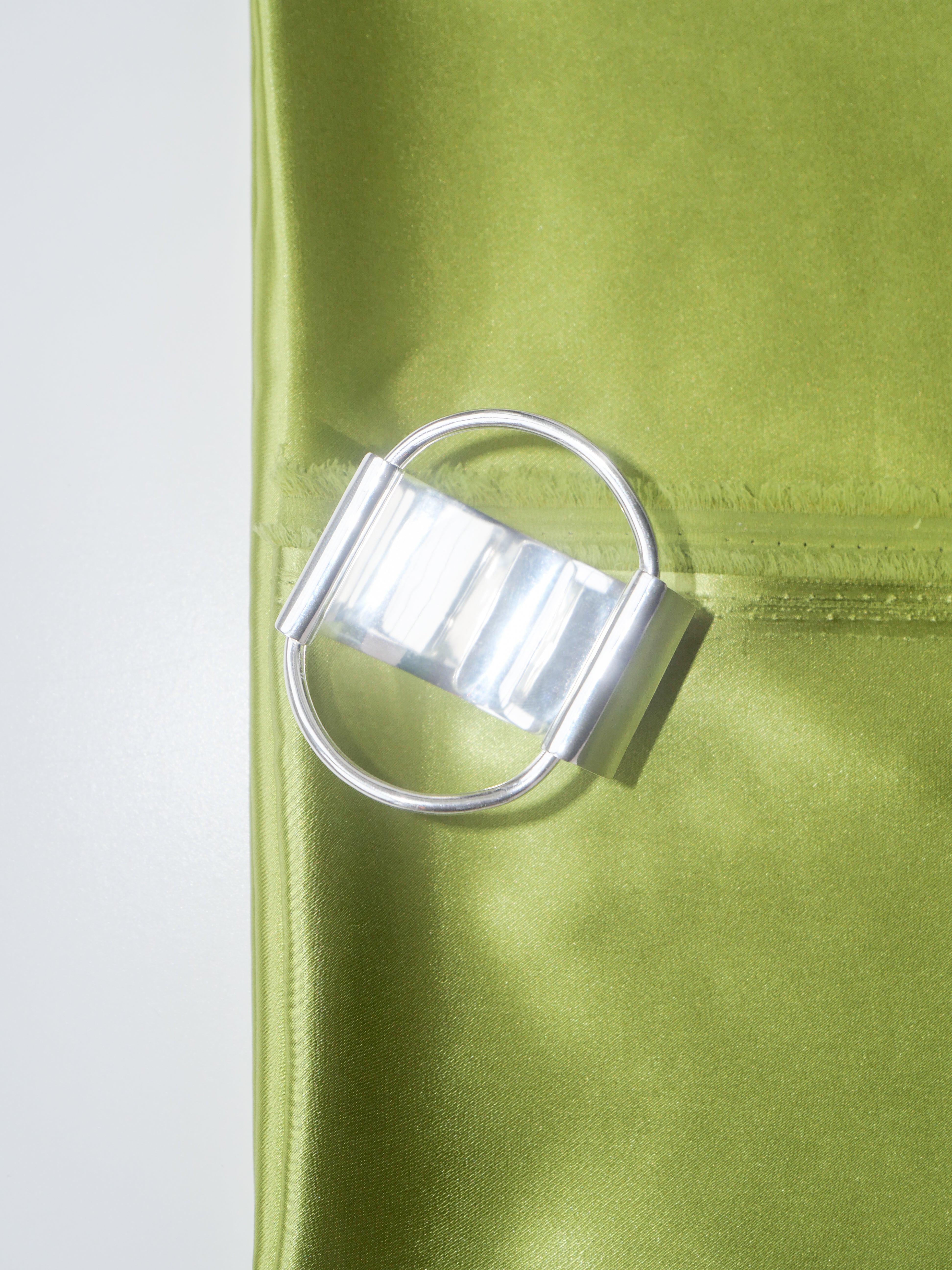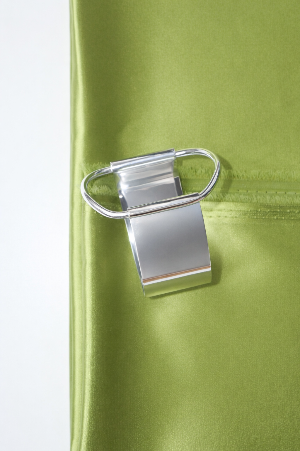 Minimal in detail but strong in form, the bracelet reflects light beautifully, enhancing its sculptural shape from every angle. The open cuff design allows for comfort and flexibility, making it as practical as it is expressive.