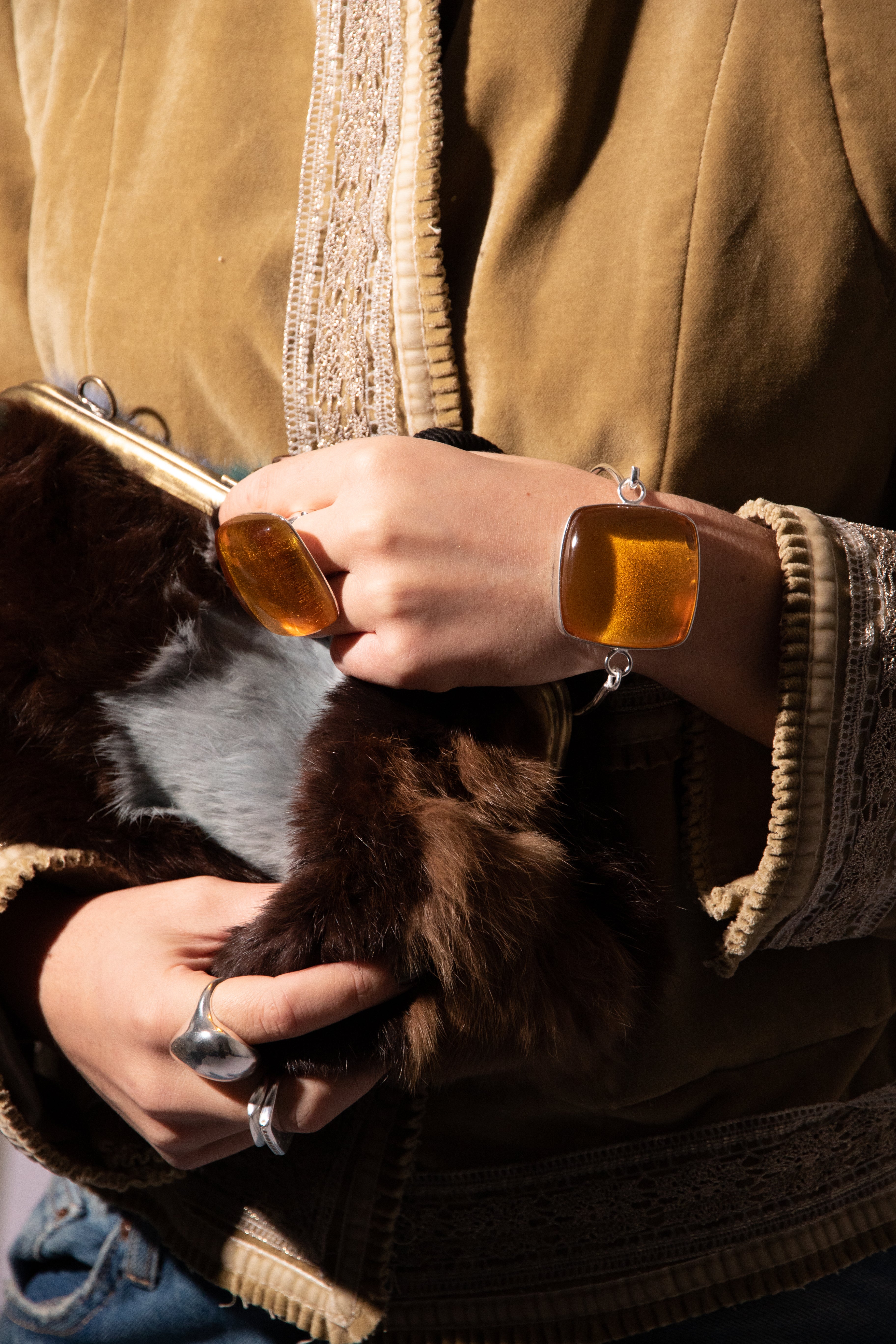 The Yellow Ray Bracelet combines sculptural form with a cool, refined energy. Accented with deep blue tones, the design reflects calm strength and quiet confidence while maintaining a bold, modern presence.